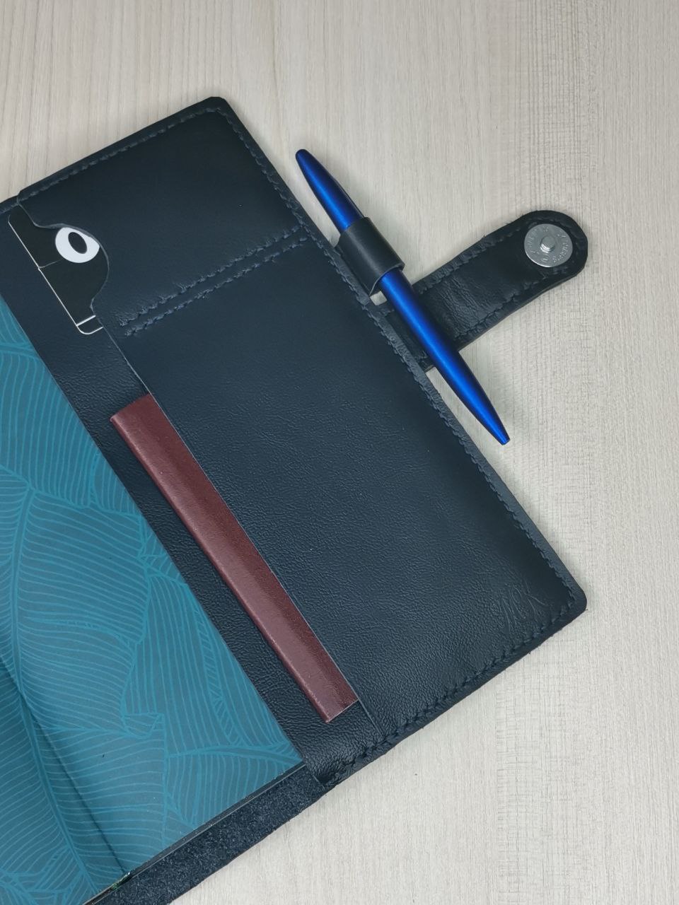 - Удобные карманы внутри обложки — для пластиковых карт, визиток и даже паспорта.