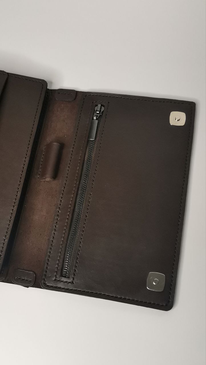 - Удобная организация — множество карманов для документов, визиток и мелочей, включая закрытый отдел на молнии для хранения особо ценных вещей