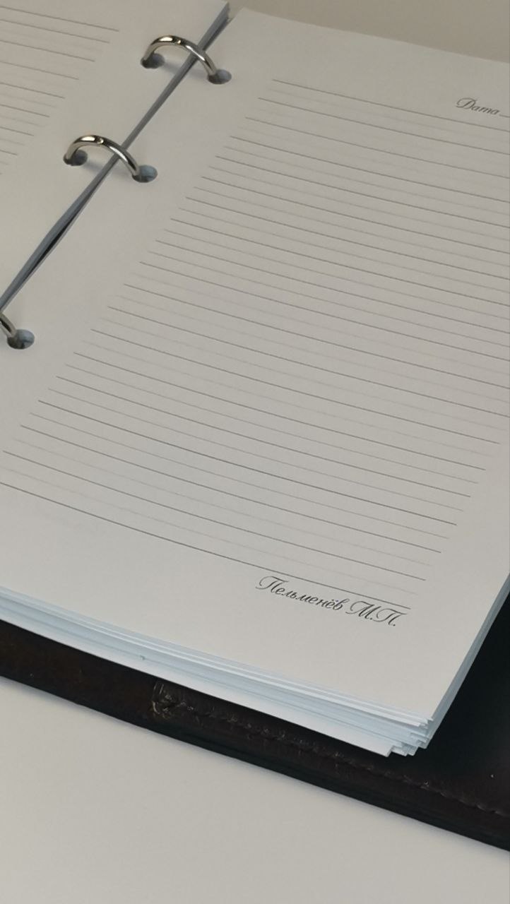- Сменный блок листов, разработанный специально под вас (возможно добавить ФИО, контактные данные, QR и любую иную информацию).